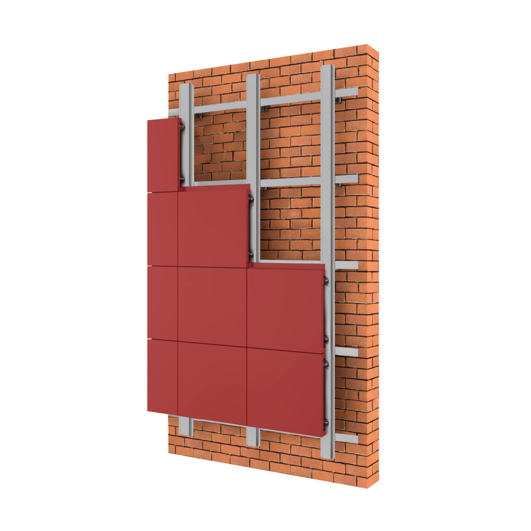 Горизонтально вертикальная система креплений алюминево композитных панелей Изображение Схема Заказать обратный звонок