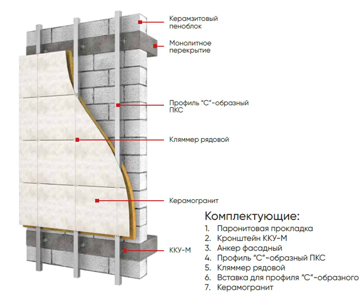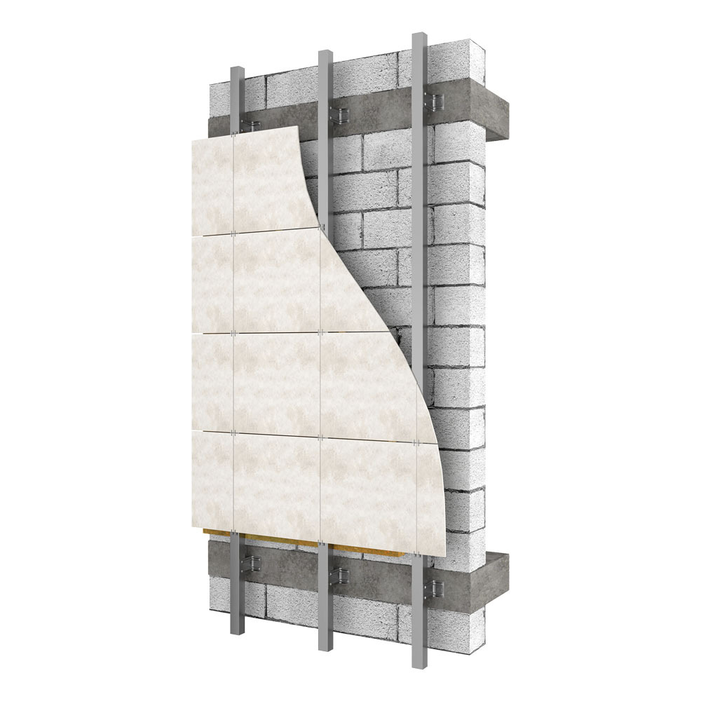 Межэтажная фасадная система — это разновидность подконструкции вентилируемого фасада, которая крепится к межэтажным перекрытиям. Такие системы используются в монолитно-каркасных зданиях, где стены выполнены из пено- или газобетонных блоков. В таких случаях невозможно использовать стандартную системувентилируемого фасада, из-за низкой несущей способности этих стеновых материалов. При этом железобетонные межэтажные перекрытия монолитно-каркасных зданий обладают высокой несущей способностью, что позволяет установить кронштейны, способные выдержать высокие нагрузки.